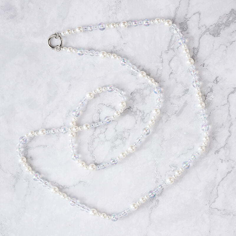 Material: High-quality faux pearls (creamy white, 6mm), transparent crystal beads with iridescent coating, silver-tone alloy spring clasp and connector